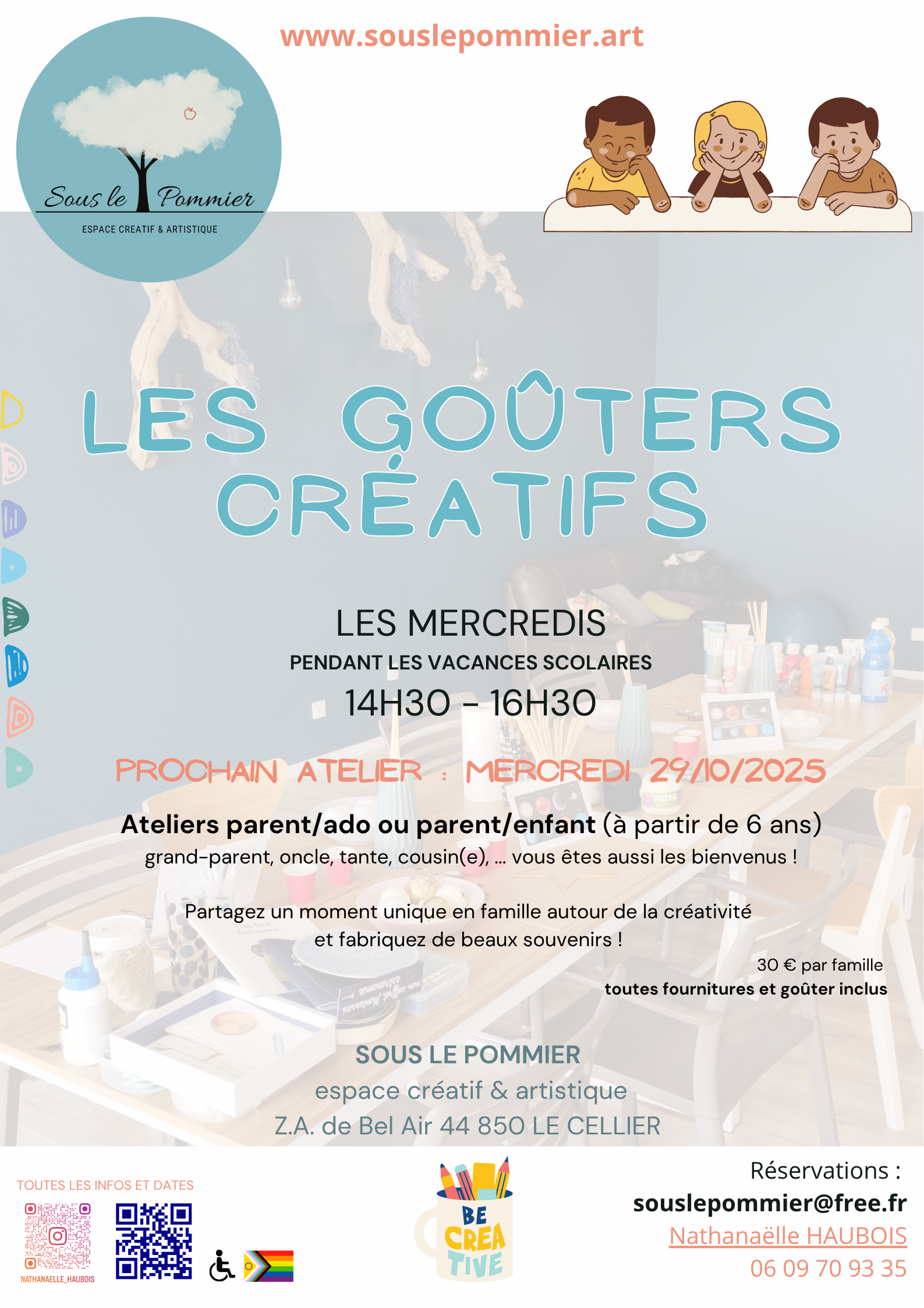 Pendant les vacances scolaires, Sous le Pommier ouvre un espace joyeux et coloré pour vivre un goûter créatif à partager avec son enfant ou son ado.