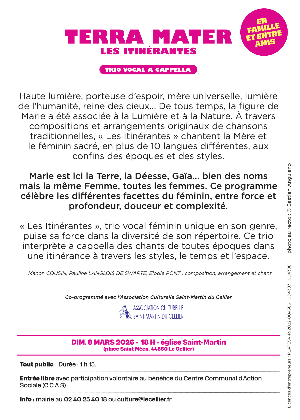Entrée libre avec participation volontaire au bénéfice du Centre Communal d'Action