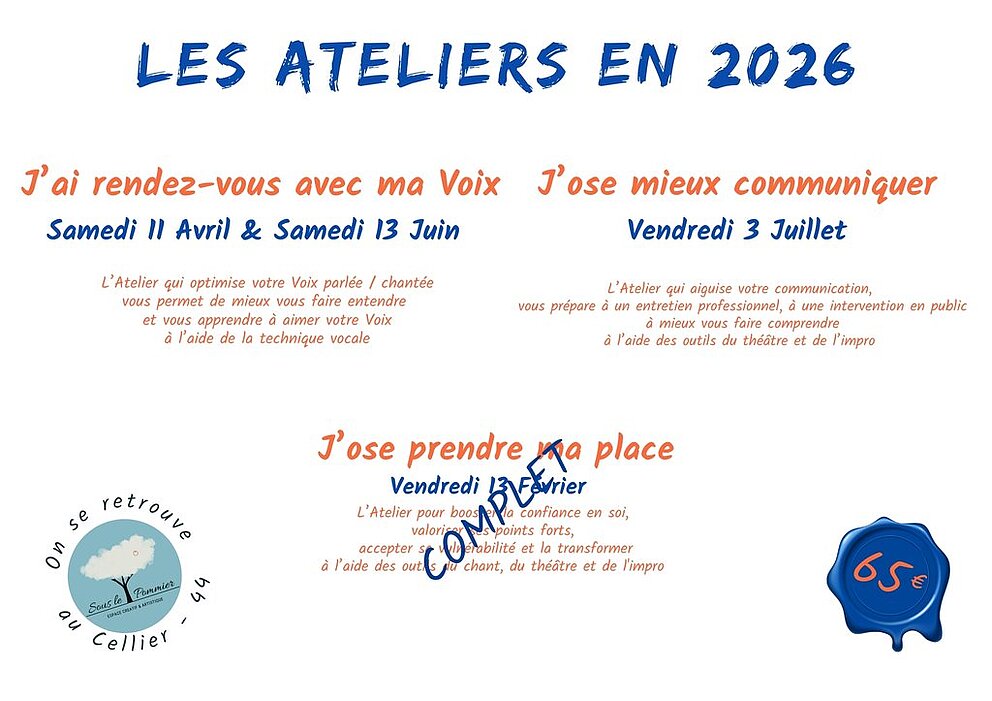 L'Atelier "J'ai rendez-vous avec ma voix" optimise votre Voix parlée / chantée vous permet de mieux vous faire entendre et vous apprendre à aimer votre Voix à l'aide de la technique vocale.