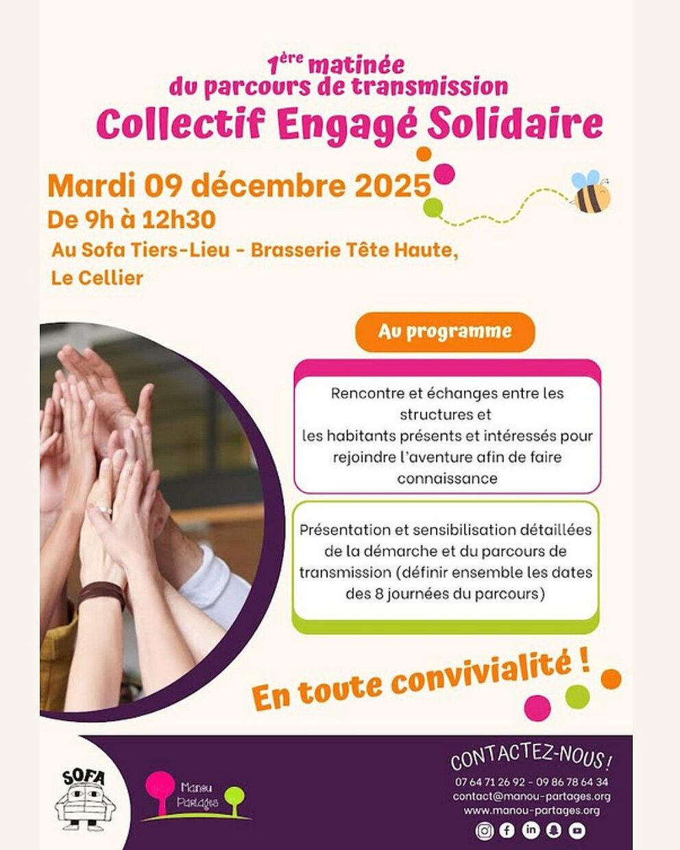 🙆♀️Rendez-vous mardi 9 décembre pour la 1ère matinée du parcours de transmission du futur collectif engagé solidaire!